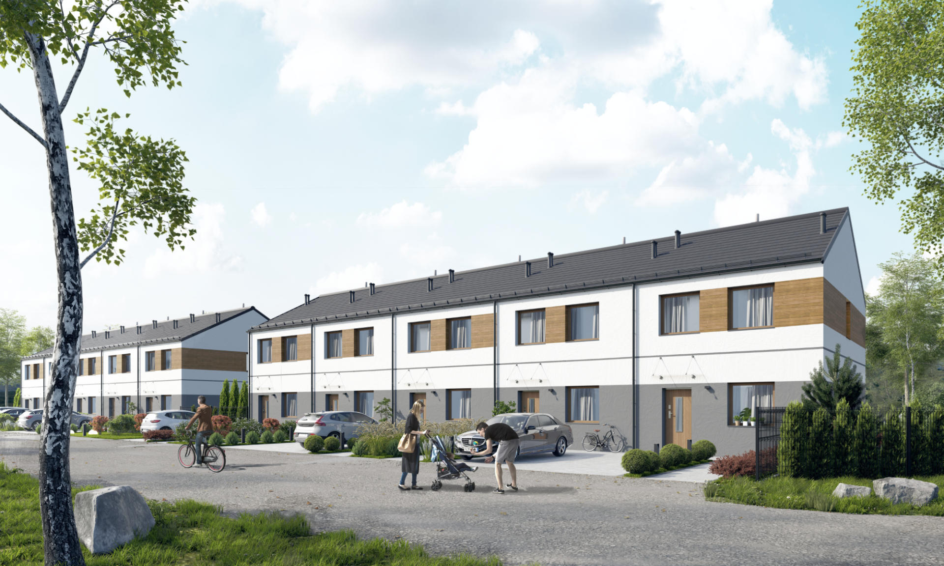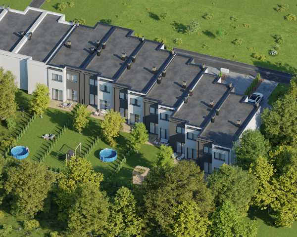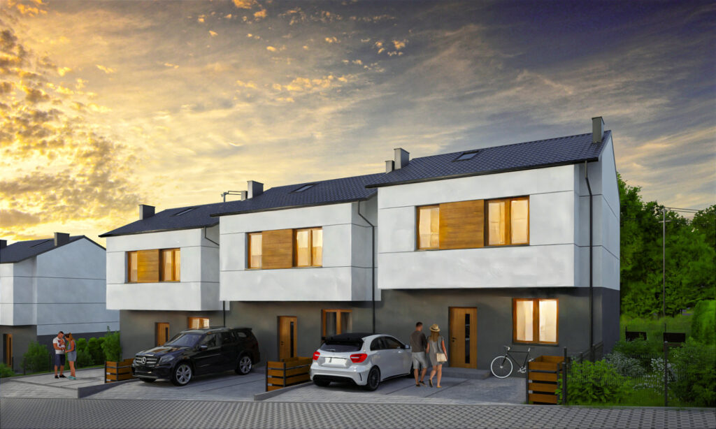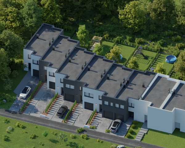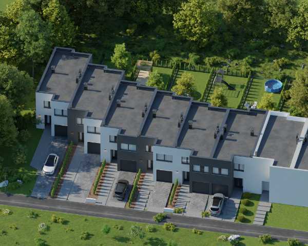 Domy wykonano w nowoczesnym stylu ze sprawdzonych materiałów budowlanych. Charakteryzują się bardzo dobrymi parametrami termoizolacji. Są oddawane w podwyższonym standardzie deweloperskim, który obejmuje: ogrzewanie podłogowe we wszystkich pomieszczeniach, okna trzyszybowe i skrzynki na rolety na parterze. Dzięki dużym oknom, wnętrza są pełne naturalnego światła. Do każdego domu przynależy indywidualny ogródek, w którym możesz odpocząć na świeżym powietrzu.