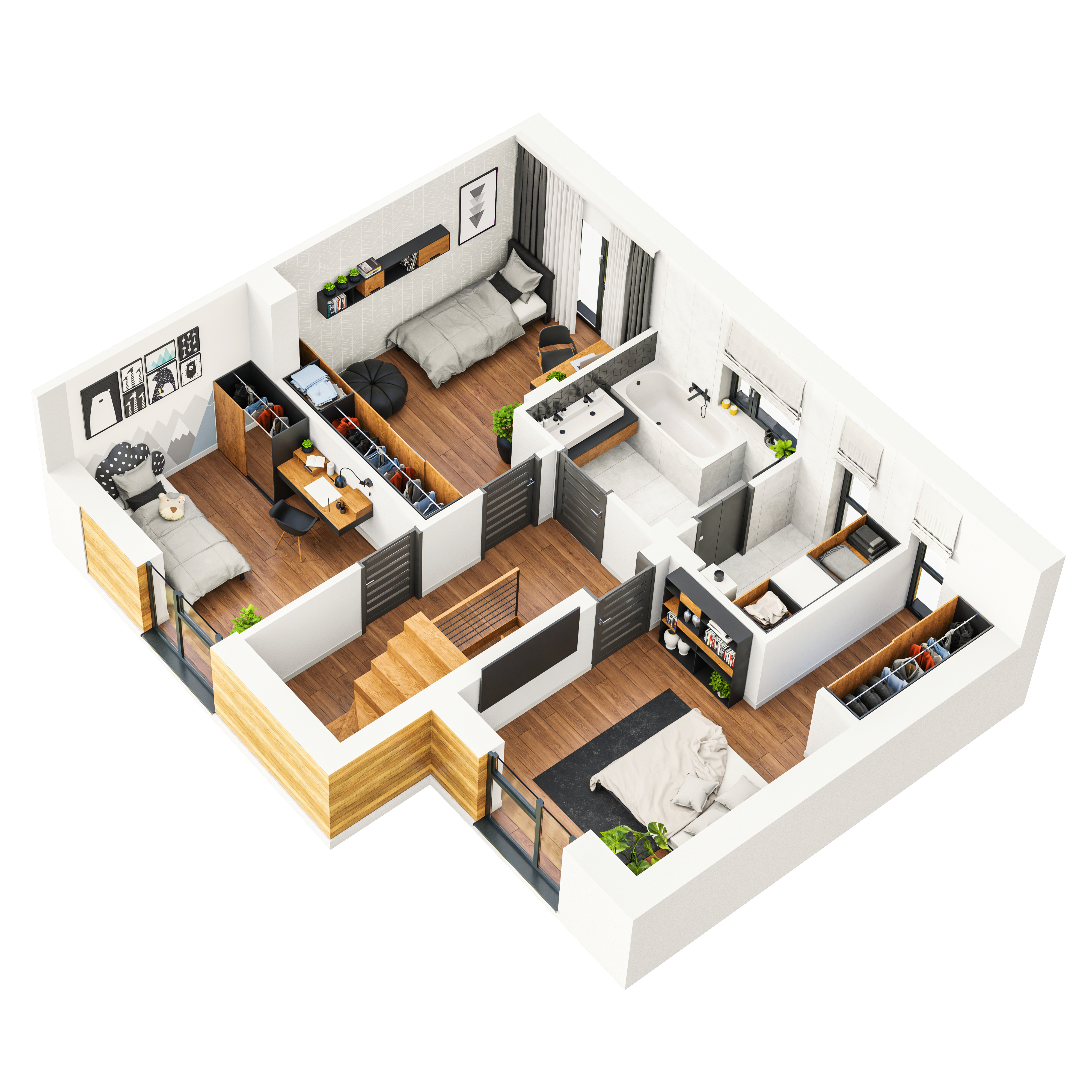 Bez trudu znajdziesz przestrzeń do aranżacji dziecięcego pokoju, gabinetu do pracy czy komfortowej sypialni. Spotkania z bliskimi zorganizujesz w przestronnym salonie z wyjściem do ogródka. Nigdy nie zabraknie Ci również miejsca do przechowywania domowego wyposażenia.