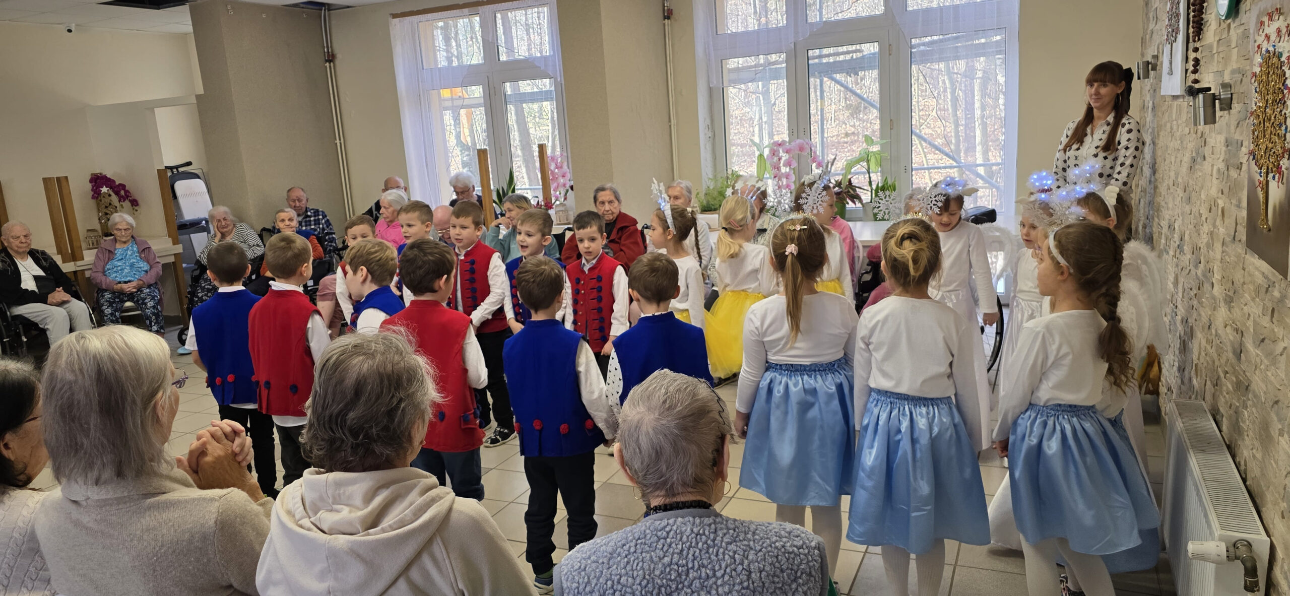 Delegacja z Przedszkola nr. 9 w Żywcu ze swoim Bożonarodzeniowym przedstawieniem